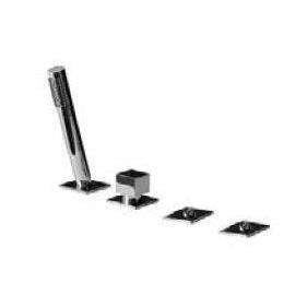 senza maniglie - senza bocca - 4 fori - deviatore a pulsante a 2 uscite - doccetta SUN - flessibile 150 cm - vitone ceramico 90° - ingressi da 3/4''...