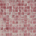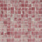 Mosaico di vetro costituito da tessere quadrate, formato 25x25 mm, spessore 6mm (+/- 1), montate su fogli di carta con giunto di ~1,57 mm, per una dimensione totale del foglio di 317x317 mm.